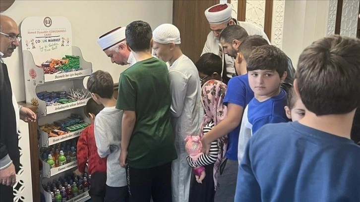 Camiye gelen her çocuğun namazdan sonra "Çocuk Market"teki raftan yiyecek ve içecek alabileceğini dile getiren Eroğlu, sözlerini şöyle sürdürdü: