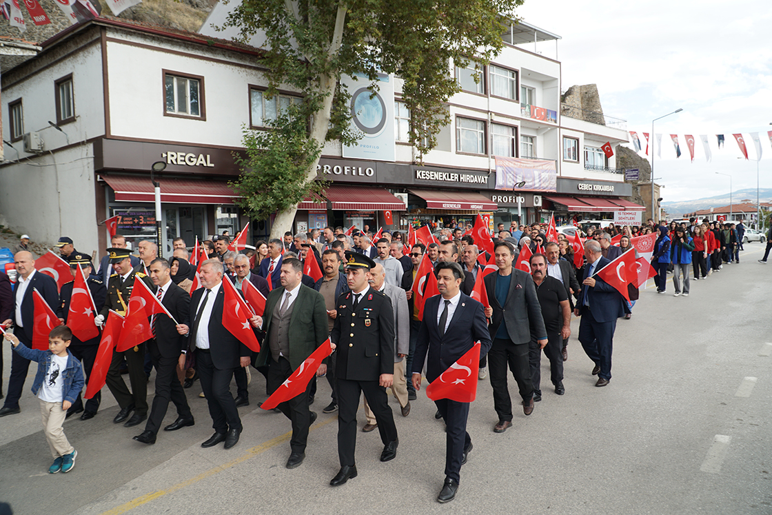 Burada, Kaymakam Furkan Duman, Belediye Başkanı Ahmet Gelgör ve Yüzbaşı Abdullah Tahtacı Atatürk Anıtı'na çelenk sundu.