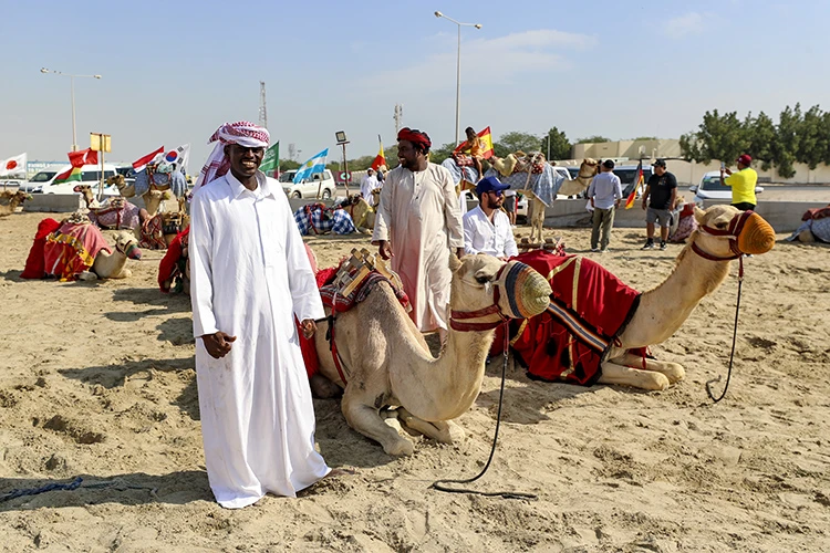 Dünya Kupası'na katılan 32 ülkenin bayraklarıyla donatılmış etkinlik alanında sizi Katar'ın meşhur develeri ve şahinleri karşılıyor.