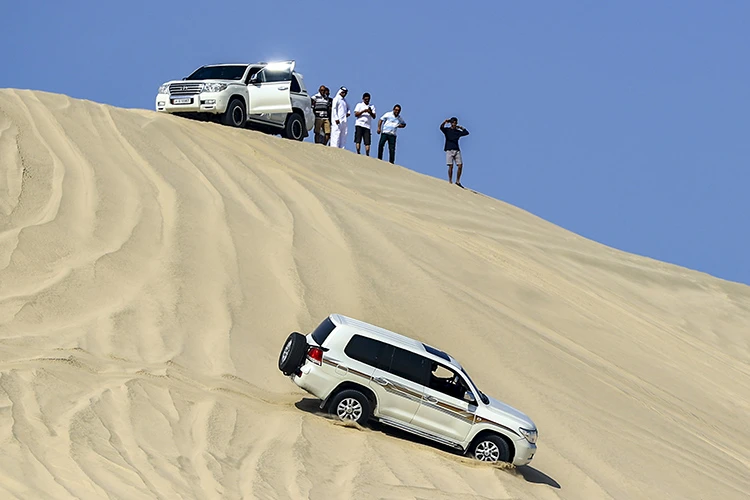 Başkent Doha'ya yaklaşık 50 kilometre uzaklıkta, çöl ve denizin birleştiği dünyadaki özel noktalardan biri olan Sealine'da gerçekleştirilen safari, dünyanın farklı noktalarından gelen futbolseverlere unutulmaz anlar yaşatıyor.
