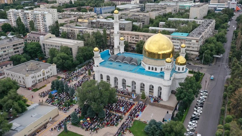 Cumhurbaşkanı Sadır Caparov, Bakanlar Kurulu Başkanı Akılbek Caparov, Milli Güvenlik Devlet Komitesi Başkanı Kamçıbek Taşiyev de cemaatle saf tuttu.