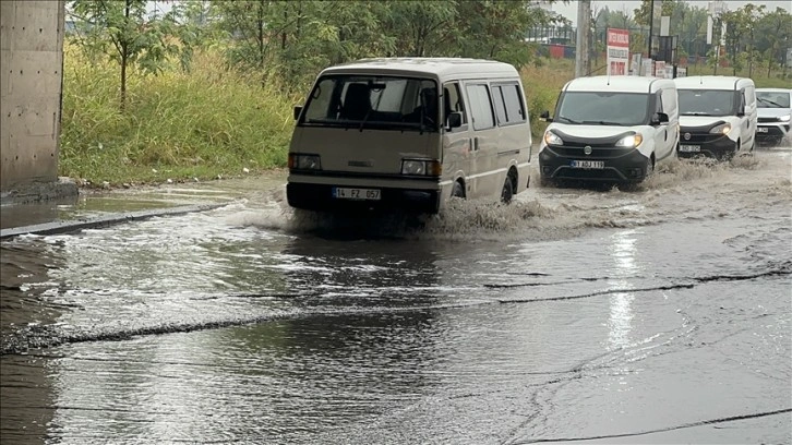 Düzce'de sağanak nedeniyle yollarda su birikintileri oluştu
