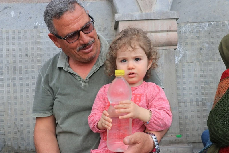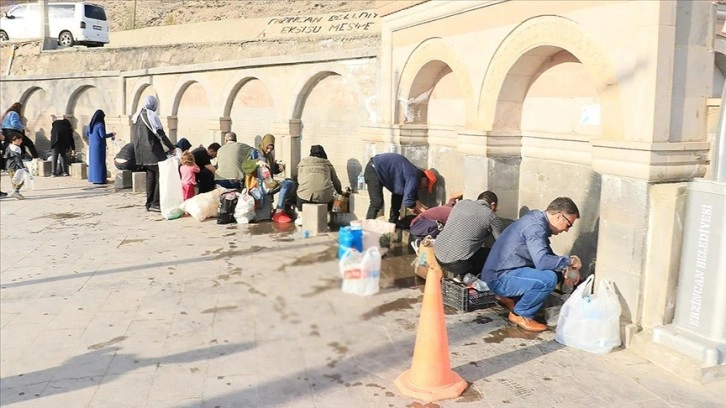 Kent merkezine 14 kilometre mesafede, Erzincan Belediyesine ait mesire alanına gelen vatandaşlar, hazmı kolaylaştıran doğal maden suyundan almak için sıraya giriyor.