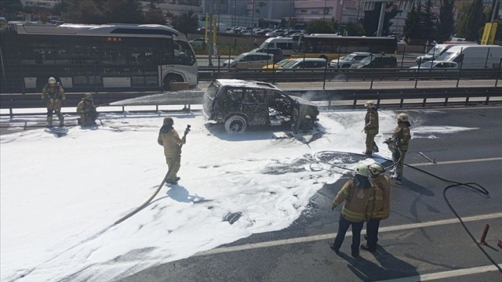 İtfaiye ekiplerinin yangını söndürmesinin ardından araç yoldan çekildi.