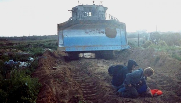 Saldırılarda binlerce sivilin hayatını kaybettiği Gazze Şeridi'nde Filistinli bir ailenin evinin yıkılmasını önlemeye çalışırken İsrail buldozerince ezilen ABD'li barış aktivisti Rachel Corrie'nin ölümünün üzerinden 21 yıl geçti
