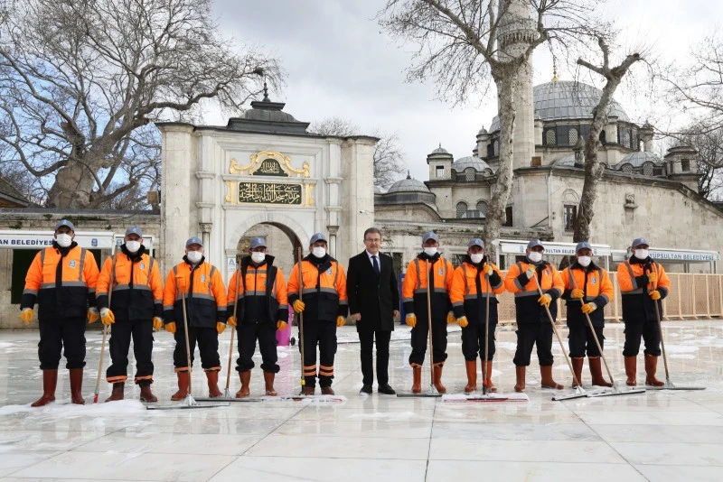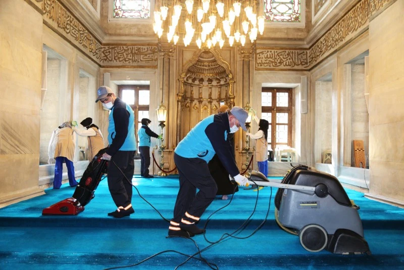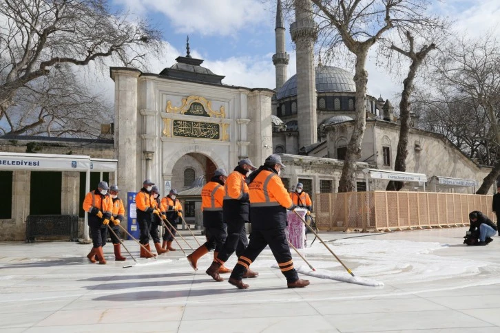 Caminin içerisi, avlusu, abdest alma yerleri Eyüpsultan Belediyesi temizlik ekipleri tarafından en ince ayrıntısına kadar temizlendi.
