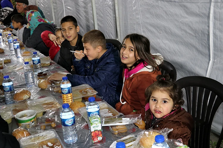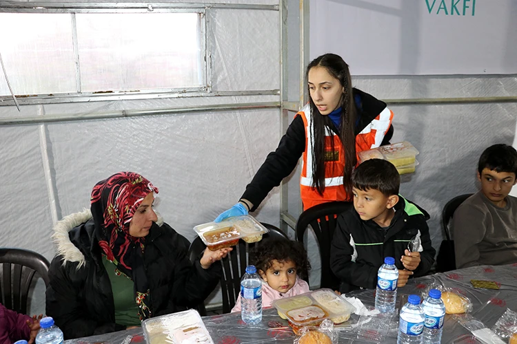 "Depremin başından bu yana aşevlerimiz ve iftar çadırlarımızda yaptığımız yemek sayılarının toplamını ifade edecek olursak, 100 binin üzerinde insanımıza günlük en az dört çeşit olmak üzere sıcak yemek hizmeti verdik.