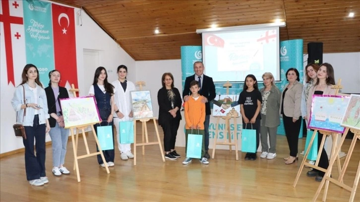 Türk-Gürcü dostluğunu öne çıkaran çalışmaların sergilendiği törende, yarışmada ilk 3'e giren öğrencilere hediyeler verildi.