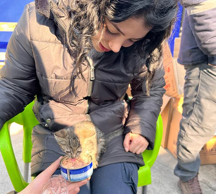 Bölgede hazır bekleyen özel bir sağlık şirketinin görevlileri tarafından teslim alınan kediye mama verildi. Kedi yavrusunun sahiplendirileceği öğrenildi.