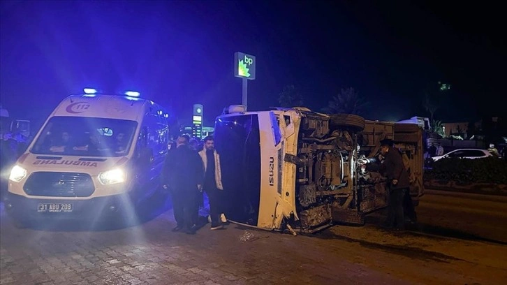 Dörtyol'dan İskenderun'a çevik kuvvet polislerini taşıyan 31 PB 786 plakalı midibüs, sürücüsünün direksiyon hakimiyetini kaybetmesi sonucu otoyolda refüje çarpıp devrildi.