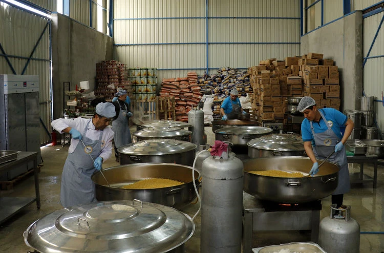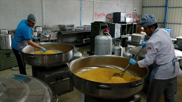 "Saat 02.00'de bir ekibimiz sahur hazırlıklarına başlıyor. Saat 03.00'te de ustalarımız çalışmaya başlıyor. Saat 02.00'de başlayan arkadaşlarımız kahvaltıyı verdikten sonra istirahate çekiliyor. Daha sonra akşam vardiyasındaki arkadaşlarımız mutfağa giriyorlar. Sahurla başlayıp iftar saatine kadar yemek dağıtımlarını yapıyorlar ve saat 22.00'de de mutfağımızı kısmen kapatmış oluyoruz." diyen Üstün, 10 gün arayla ekibi yenilediklerini söyledi.