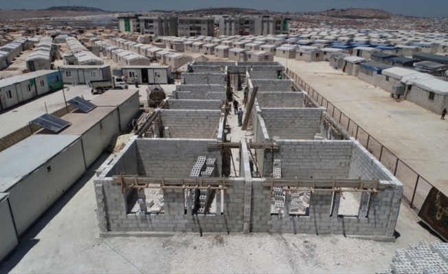 Suriye'nin farklı bölgelerinde savaş mağduru ve ihtiyaç sahibi siviller için briketten inşa edilen evlerin bulunduğu kamp alanları kuran İHH, çocukların eğitimlerine devam edebilmeleri için de aynı arazilere okul binası inşa ediyor.