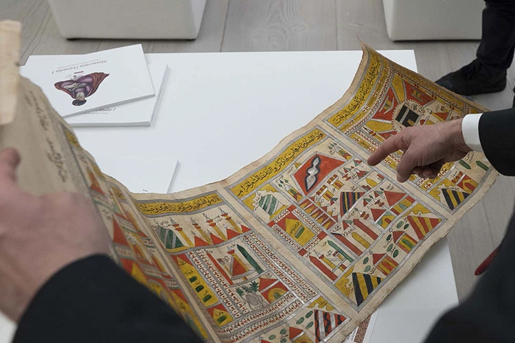"Çok değerli ve işlemeli bir belge. Hac yaptıktan sonra hacılara verilen bir sertifika." diyen Frey, 1722 yılına tarihlenen belgenin, bir anı olmanın yanında resmi belge olma özelliği taşıdığını da anlattı.