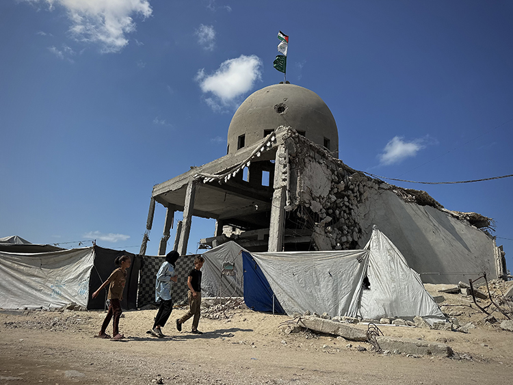Bazı mahallelerde aylarca minarelerin sessiz kalmasının ardından Filistinliler, camilerdeki enkazın bir kısmını elleriyle temizleyip, yere basit kumaşlar sererek cuma namazı kıldı.
