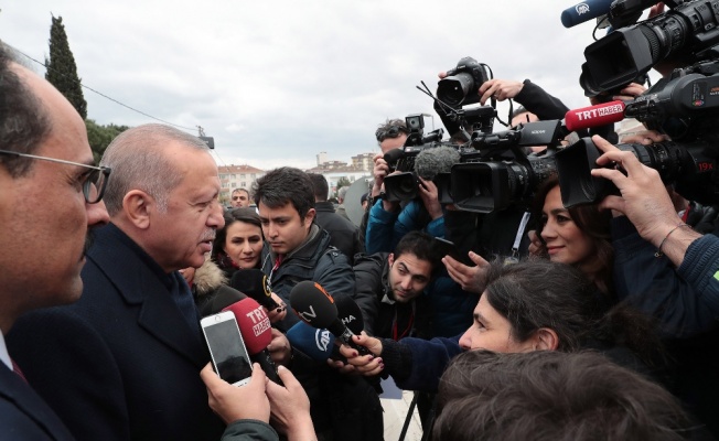 Cuma namazını kıldıktan sonra, kendisini bekleyen basın mensuplarına açıklamalarda bulunan Cumhurbaşkanı Erdoğan, “Yarın yine İstanbul’da 6 ilçede mitingler var. Bu şekilde noktalayıp artık Pazar günü çok büyük bir anketi inşallah milletimiz sandıklarda yapacak. Temennimiz odur ki milletimiz, ülkemiz refahı için inşallah güzel bir neticeyle herhangi bir sıkıntıya mahal vermeden seçimlerimizi tamamlamış oluruz ve bu demokratik mücadele maalesef meşruiyet dışı atılan bazı adımlar varsa da milletimizin vereceği cevapla bunlar da yoluna girmiş olur. İstanbul, Ankara, İzmir buralar çok önemli. Toplam 30 büyükşehir bunlar çok önem arz ediyor. Buralardan gelecek netice de Türkiye’de yapılan bu seçimin kaderi üzerinde çok önemli. Yüzde 80 - 85 gibi bir oy buralarda yatıyor. İnşallah ülkemiz için hayırlı olacaktır diyorum” şeklinde konuştu.
