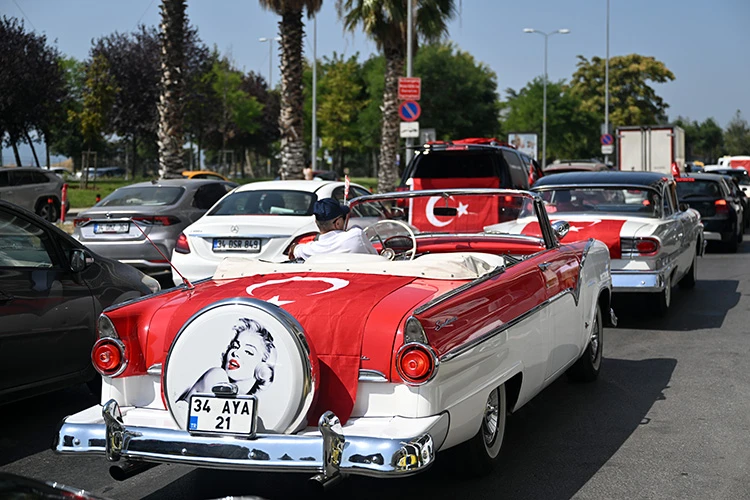 Türk bayraklarıyla süslenen klasik araçlarla Pendik Sahili'nden yola çıkarak "zafer ve demokrasi konvoyu" oluşturan üyeler, Kartal ve Bağdat Caddesi'nden de geçti.