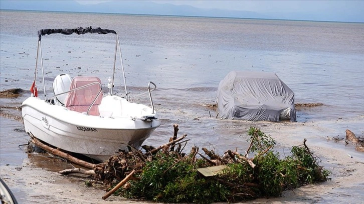 Ahmetbeyli Mahallesi'nde ise derenin taşması sonucu Maydonoz Koyu'ndaki yolun bir bölümü çöktü. Yolda park halindeki otomobillerden biri ile koyda bağlı olan teknelerden bazıları denize sürüklendi.