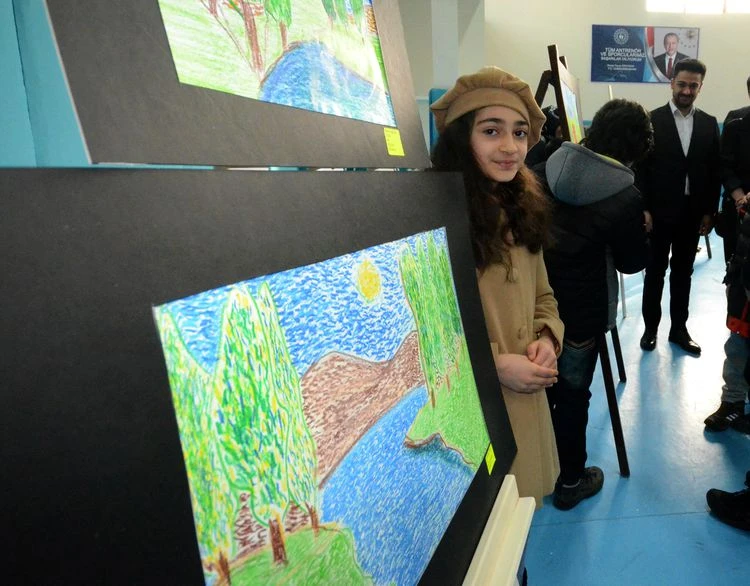 Hayal güçlerini tuale aktaran öğrencilerin yaptığı resimler, açılışı yapılan sergiyle vatandaşların beğenesine sunuldu.