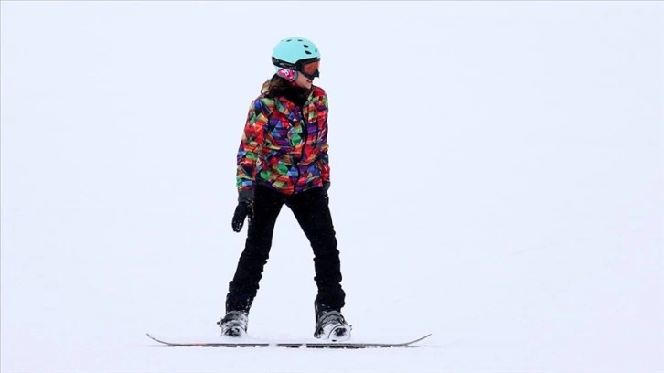 Kar kalınlığının 209 santimetre ölçüldüğü merkeze gelen ziyaretçiler, kar yağışı altında kızakla kaydı, kayak ve snowboard yaptı.