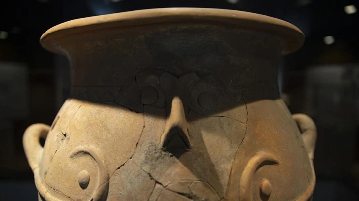 Sergideki gözlerle süslenmiş eserlerden olan Limantepe Höyüğü'nden 2012'deki kazılarda çıkarılan insan yüzlü çömleğin de kutsal buğdayın saklanması için kullanıldığı değerlendiriliyor.