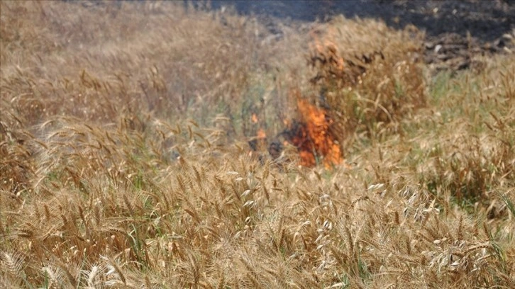 İtfaiyenin müdahalesiyle söndürülen yangın sonucu 100 dekar buğday ekili alan zarar gördü.