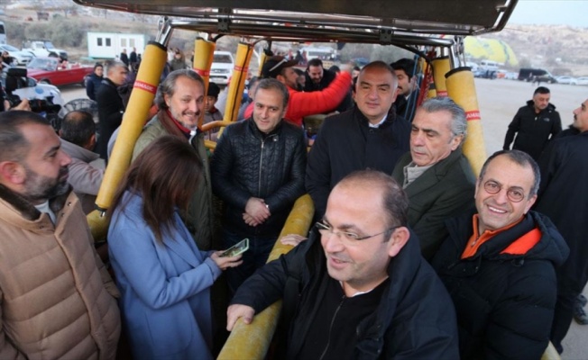 NEVŞEHİR (AA) - Çeşitli inceleme ve ziyaretlerde bulunmak üzere Nevşehir'e gelen Bakan Ersoy, beraberindeki heyet ve gazetecilerle sıcak hava balon turuna katılarak, Kapadokya'yı gökyüzünden seyretti.