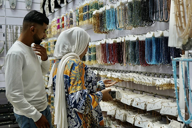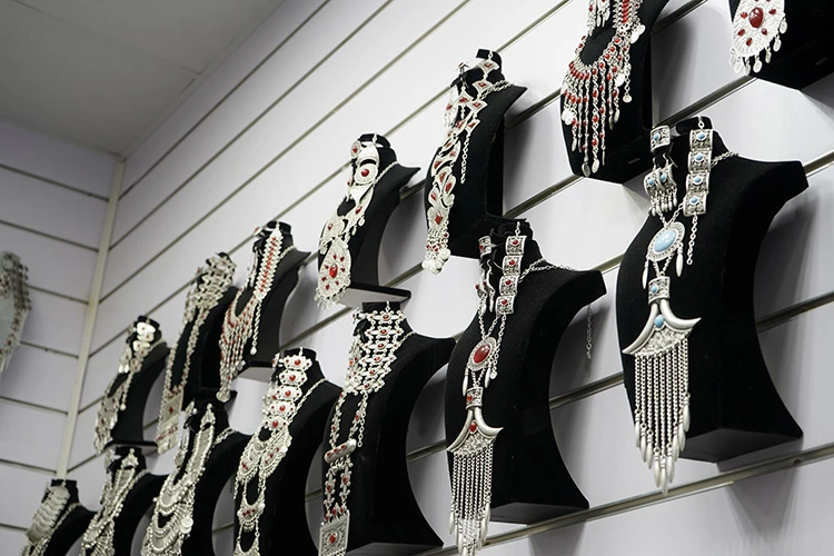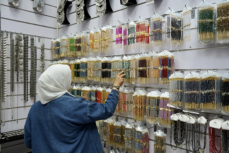 Çakır, "Bu takılar zamak madeninden yapılıyor. Türkiye’de Osmanlı takısı olarak da biliniyor. Türkiye’de üretip parça halinde buraya getirip, takım haline getirtiyoruz. Boncuk bileklik ve kolyeler de var. Bazılarını kendimiz yaptırıyor, bazılarını ise hazır alıyoruz." dedi.