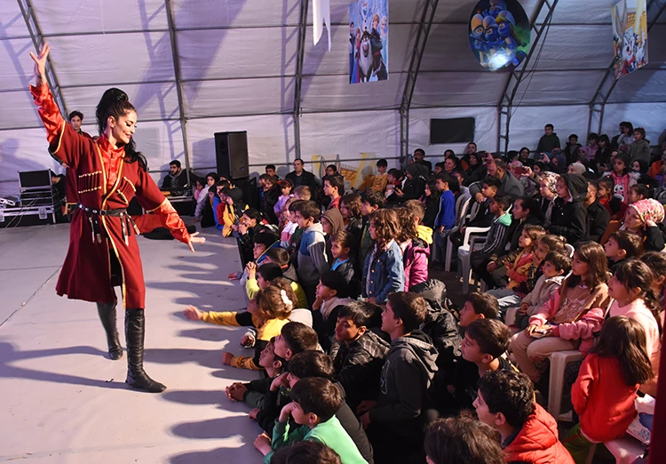 Müzikli danslı çocuk oyunu, Malatya'da sadece depremzede çocuklardan değil aynı zamanda ailelerden de büyük ilgi gördü.