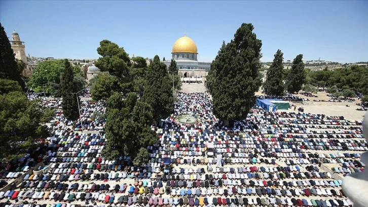 İsrail güçlerinin önlemleri arasında izin verilen yaş aralığında binlerce Filistinli işgal altındaki Batı Şeria'nın tüm bölgelerinden Mescid-i Aksa'ya geliyor.