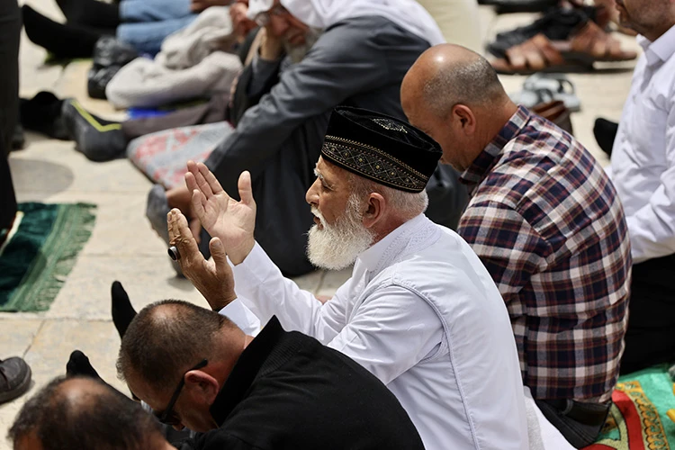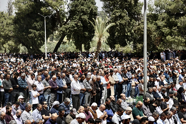 Yetişkin ve çocuk her yaştan kadın ve erkek, Mekke'deki Mescid-i Haram ve Medine'deki Mescid-i Nebevi’den sonra en kutsal üçüncü cami Mescid-i Aksa’nın bahçe ve avlularını da doldurarak saf tuttu.