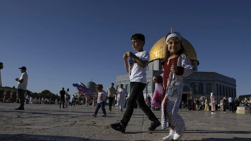 Binlerce Filistinli, bayram namazı için sabahın erken saatlerinde Mescid-i Aksa'ya akın etti.