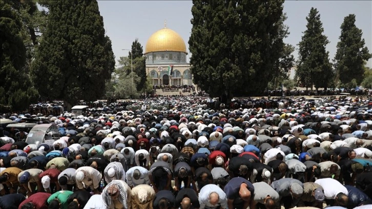İşgal altındaki Batı Şeria’dan gelen binlerce Filistinli de cemaat arasında yerini aldı.