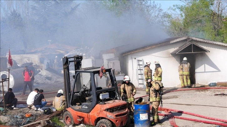 Pendik'te yediemin deposunda çıkan yangına itfaiye ekipleri müdahale ediyor.