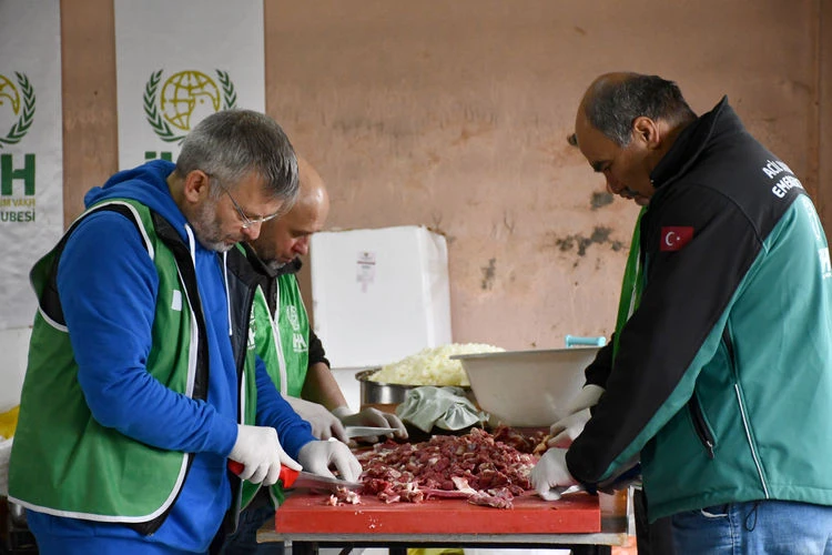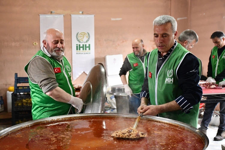 İnsan Hak ve Hürriyetleri (İHH) İnsani Yardım Vakfı Bursa Şubesi gönüllüleri, Kahramanmaraş merkezli 6 Şubat'ta meydana gelen depremlerden etkilenen Malatya'nın Doğanşehir ilçesi kırsalında ramazanda günlük yaklaşık 2 bin kişiye sıcak yemek hizmeti sunuyor.