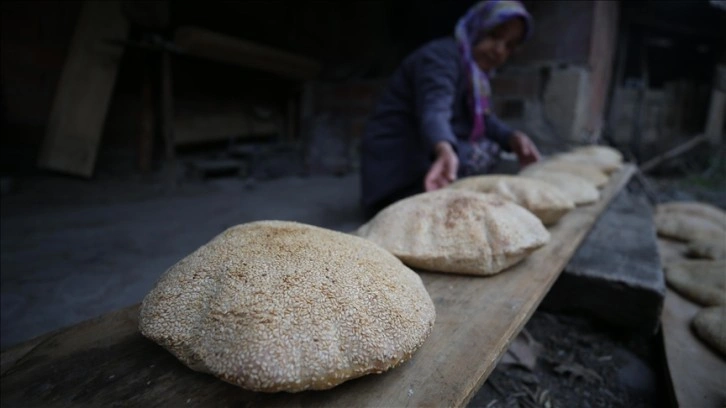 "Hamur karıştırdığımız maya ile kabarıp kıvama gelince elimizde açıp susam döküyoruz. Daha sonra bahçemizdeki fırında pişiririz. Sonra da boş odaya sereriz, isteyen buzdolabına koyar, isteyen kurutur, o şekilde muhafaza eder. Tadı bize çok lezzetli gelir, hem ekmek gibi hem çörek niyetine tüketiyoruz. Hamurumuzun mayası da bize ninelerimizden kalma."