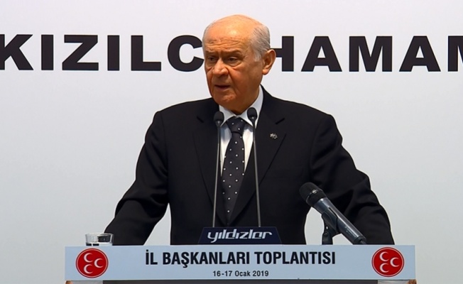 MHP Genel Başkanı Devlet Bahçeli, Kızılcahamam’da gerçekleştirilen partisinin İl Başkanları Toplantısı’nın ardından basın mensuplarının gündeme ilişkin sorularını yanıtladı. ABD Başkanı Donald Trump’ın Türkiye’ye yönelik tutum ve tweetlerine ilişkin Bahçeli, "Trump’ın ağzını kapatmadığınız müddetçe konu kapanmaz" dedi. Bahçeli, güvenli bölge tanımının PKK/YPG’den arındırılmış bölge anlamına geldiğini belirterek, bölgede terör örgütleri varsa güvenli bölge olarak bahsedilemeyeceğini, bahsedilecek şeyin temizlemek olması gerektiğini vurguladı.