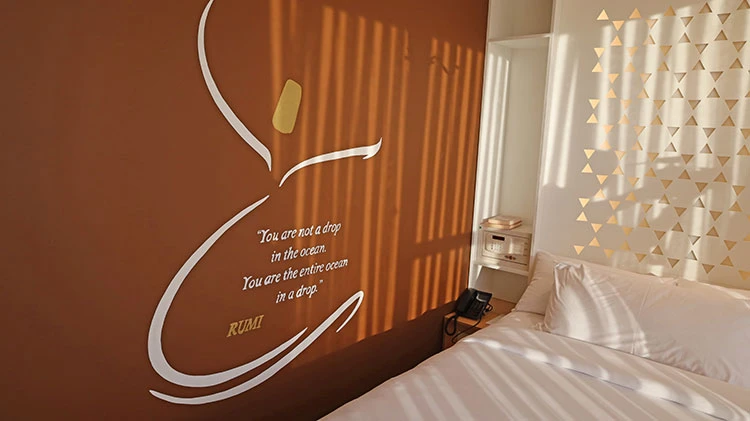 Anadolu ve Mezopotamya'nın zengin kültür hazinelerine ilişkin örneklerin de kabartma ve tablolarla anlatıldığı otelde, dünyanın farklı ülkelerinden gelen konuklara "Gılgamış Destanı", "Şahmaran Destanı", "Hacivat ile Karagöz" ve "Nasrettin Hoca" da ayrı ayrı odalarda hazırlanan obje ve görsel öğelerle tanıtılıyor.