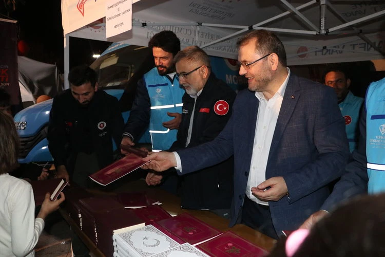 "Depremin ilk gününden itibaren 18 bin personelle buradayız. Bugüne kadar 50 bin civarında Kur'an'ı bu bölgeye gönderdik.