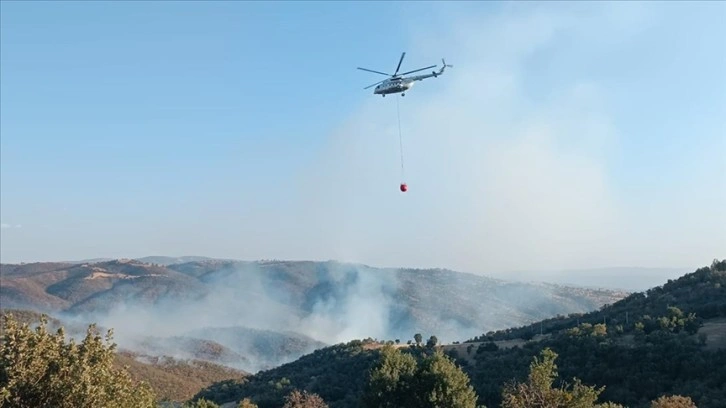 Rüzgarın da etkisiyle geniş bir alana yayılan yangına, 6 helikopter, 4 uçakla havadan müdahale edildi.