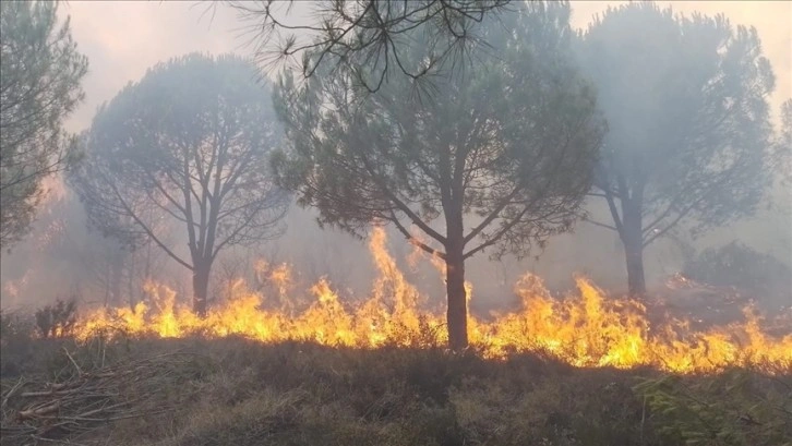 2 helikopter, 10 arazöz ve itfaiye araçlarının müdahale ettiği yangın kontrol altına alınmaya çalışılıyor.