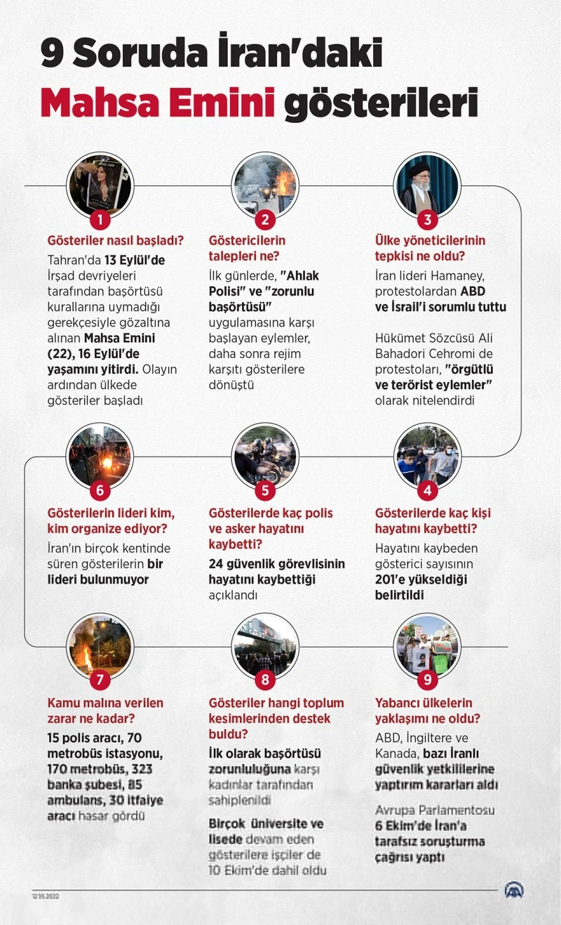 Tahran'da 13 Eylül'de "ahlak polisi" olarak bilinen İrşad devriyeleri tarafından başörtüsü kurallarına uymadığı gerekçesiyle gözaltına alındıktan sonra fenalaşarak hastaneye kaldırılan 22 yaşındaki Mahsa Emini'nin 16 Eylül'de yaşamını yitirmesi ülkede infiale yol açtı.