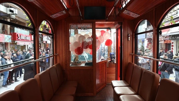 Cumhuriyet'in 100. yılına ithafen yapılan kırmızı nostaljik tramvay, trafiğe kapalı olan Mareşal Fevzi Çakmak Caddesi'nde hizmete girdi.