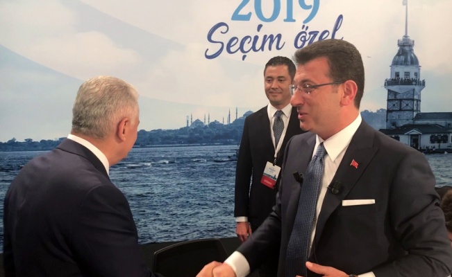 AK Parti İstanbul Büyükşehir Belediye Başkan Adayı Binali Yıldırım ile CHP’nin İstanbul Büyükşehir Belediye Başkan Adayı Ekrem İmamoğlu’u dün Lütfi Kırdar Kongre ve Sergi Merkezi’nde İsmail Küçükkaya moderatörlüğünde bir araya geldi. “ İstanbul 2019 seçim özel” isimli programda biraya gelen ikilinin ilk karşılaşma anı görüntüleri ortaya çıktı. Görüntülerde, Yıldırım’ın ve İmamoğlu’nun bir birilerine sarılarak selamladıkları görüldü. İkilinin daha sonra canlı yayına hazırlık yaptığı görüldü.