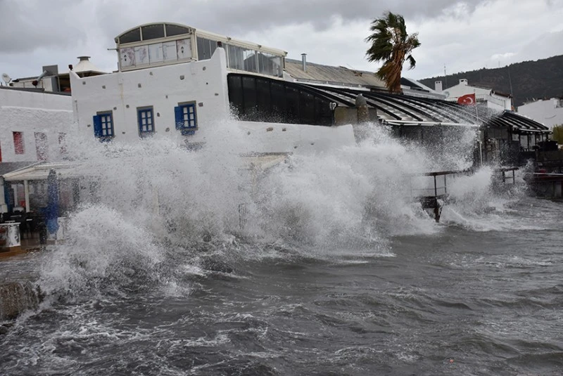 Muğla'nın Bodrum ilçesinde kuvvetli rüzgar hayatı olumsuz etkiliyor