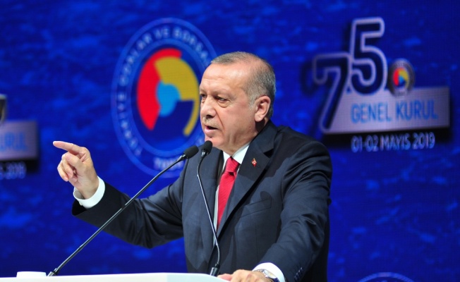 TOBB Ekonomi ve Teknoloji Üniversitesi Sosyal Tesisleri’nde düzenlenen TOBB 75. Genel Kurulunda konuşan Cumhurbaşkanı Erdoğan, “Bugün ülkemizin itibarı iftihar verici bir seviyeye ulaşmışsa bunda adeta bir Alperen ruhu ile dünyada ayak basmadık yer bırakmayan girişimcilerimizin çok büyük emeği ve katkısı vardır” açıklamasında bulundu.