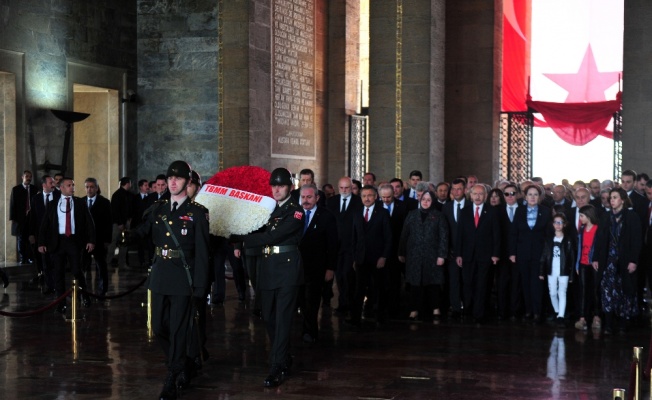 Şentop ve beraberindeki heyet, Aslanlı Yoldan geçerek Atatürk’ün mozolesine geldi. Kılıçdaroğlu ve Akşener Aslanlı Yol’da ilerlerken uzun sohbet etti. Şentop’un mozoleye çelenk bırakmasının ardından saygı duruşunda bulunularak, İstiklal Marşı okundu.