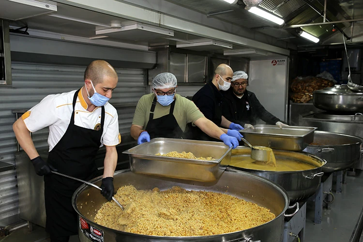 Bir öğünde 5 bin kişiye yemek dağıtımı yapabilme kapasitesine sahip mobil mutfaklar, normal dönemde günün üç öğünü, ramazan ayı dolayısıyla iftar ve sahurda depremzedelere sıcak yemek hizmeti sunuyor.