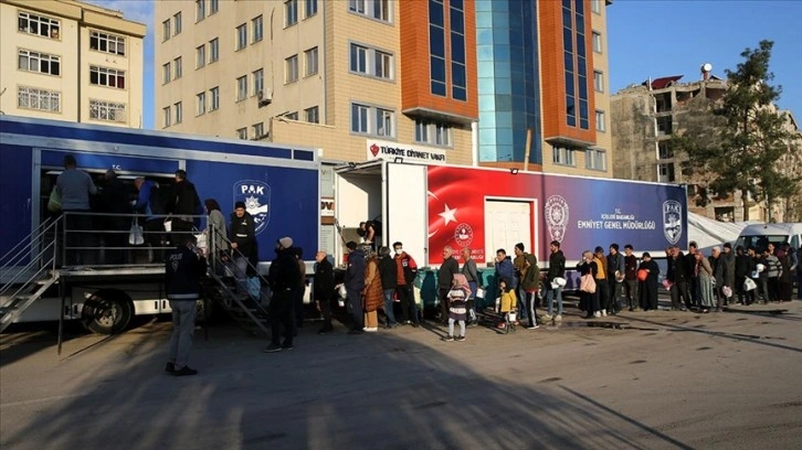 Polisler, deprem bölgelerinde mağduriyet yaşayan afetzedelerin taleplerinin karşılanması ve sıkıntılarının giderilmesi için de mesai yapıyor.