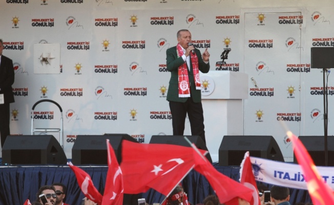 Muhalefetin başındaki zatın işinin gücünün yalan olduğunu dile getiren Erdoğan, “Sabah yalan akşam yalan ne oldu açmış eline kağıtları Man adası, Man adası, davayı açtım kazandım. 2.5 milyonu Mehmetçik Vakfı’na hibe edeceğim. Önemli bu. Anlamaz bundan Bay Kemal. Değerli kardeşlerim bunlarla da kalmayacağız. Bu adamın yalan ve müfteri olduğunu ispat etmek lazım. Bugüne kadar şehirlerimiz arasında ayrımcılık yaptık mı, insanımızı kamplara ayırdık mı? Kimsenin inancına,kılık kıyafetine, hayat tarzına müdahale ettik mi? Biz inancına hayat tarzına kefiliz. Bunda bir oyuna giremeyiz. Yasakları değil özgürlükleri vesayeti değil demokrasiyi savunuyoruz. Çıkmış biri Hatay Belediye başkanı oy yoksa hizmette yok diyor. Sen belediye başkanısın bunu nasıl söylersin. Senin görevin hizmeti yapmak. Ama biz milletimize efendi olmaya değil hizmetkar olmaya geliyoruz. İşte bunlar CHP’ ne demektir çöp, çukur çamur, birde çarpık yapılaşma, yolsuzluk, yasaklar yokluk her şey var. Bütün bunlara rağmen bizim Güney Doğu’da oy aldığımız yer var milletvekili çıkaramadığımız yer var. Biz buralara da hizmet götürdük. 780 bin kilometrekarenin 82 milyonun cumhurbaşkanıyım.” dedi.