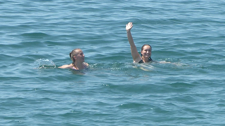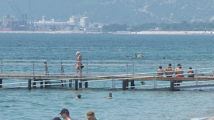 Hava sıcaklığının 28 derece ölçüldüğü kentte, güzel havanın tadını çıkarmak isteyenler Konyaaltı Sahili'nde denize girdi, kamp sandalyelerinde oturarak vakit geçirdi.